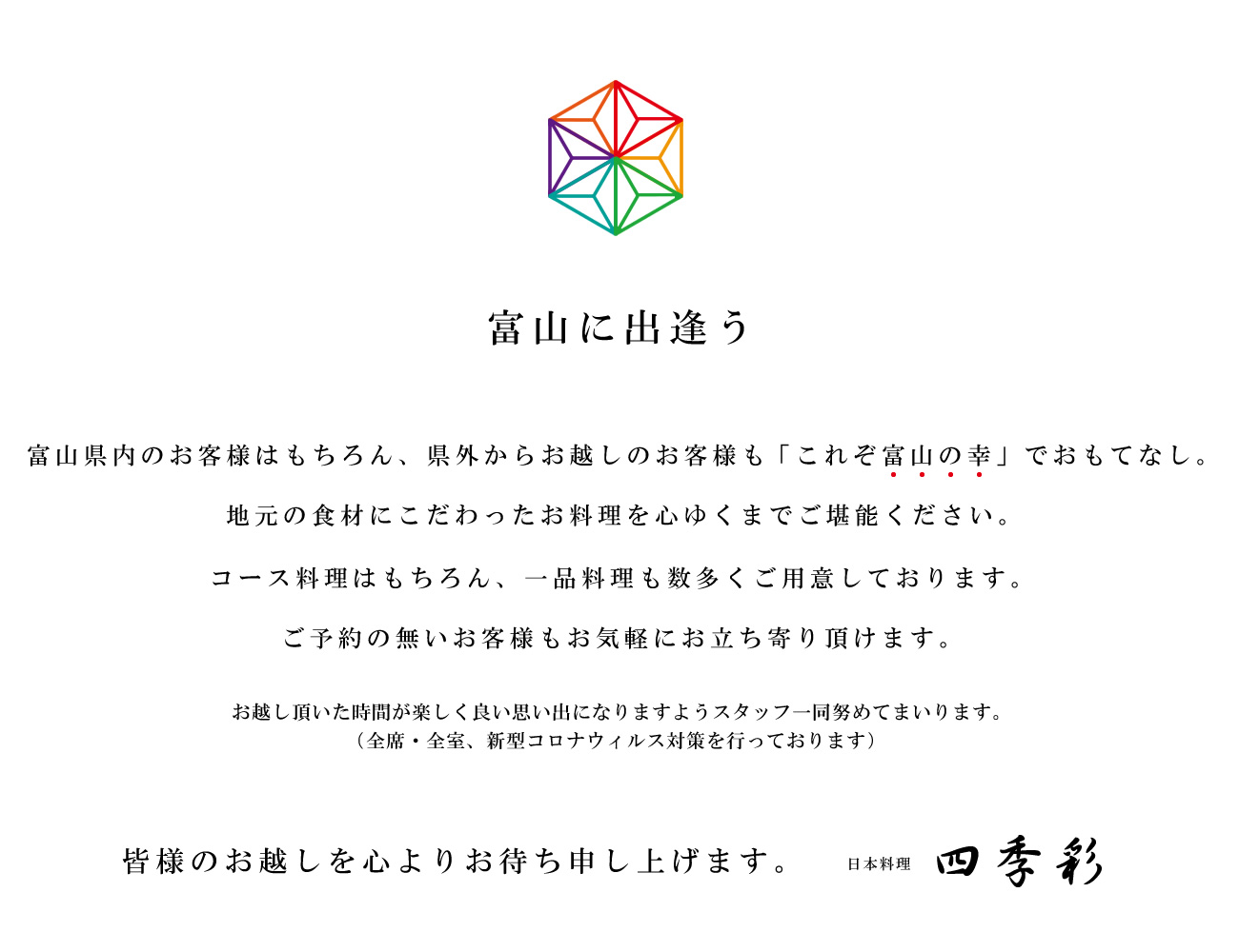 日本料理 四季彩 〒930-0083 富山県富山市総曲輪2丁目8-24